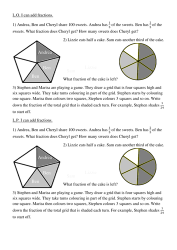 Math worksheets adding fractions. › worksheets › grade_3Free Printable Math Worksheets for Grade 3 - Homeschool Math You are here: Home → Worksheets → Grade 3 Free Printable Math Worksheets for Grade 3. This is a comprehensive collection of math worksheets for grade 3, organized by topics such as addition, subtraction, mental math, regrouping, place value, multiplication, division, clock, money, measuring, and geometry. › free-math-worksheets › fifthGrade 5 Math Worksheet: Adding fractions with like ... Math worksheets: Adding fractions with like denominators. Below are six versions of our grade 5 math worksheet on adding fractions which have the same denominator. All fractions are proper fractionsThese worksheets are pdf files. › fraction-additionAdding Fractions Worksheets - Math Worksheets 4 Kids Featured here are exclusive resources on adding unit fractions, making a whole, finding the missing fractions, and finding the variables on fractions. This compilation of adding fractions worksheets is ideal for 3rd grade, 4th grade, 5th grade, and 6th grade students. Access some of these worksheets for free. › Fractions › Adding_FractionsAdding Two Fractions Worksheets - Math-Aids.Com Fractions Worksheets Adding Two Fractions Worksheets. These fractions worksheets are great practice for the adding two fractions. These fractions worksheets will generate 10 or 15 problems of different degrees of difficulty per worksheet. The answer key for the fractions worksheets will show the progression on how to solve the problems.